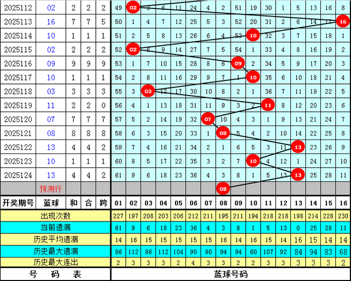 蓝球分析:偶数蓝球最近发达较冷,本期防偶数蓝球出现,矜恤号码02、04、08、16。