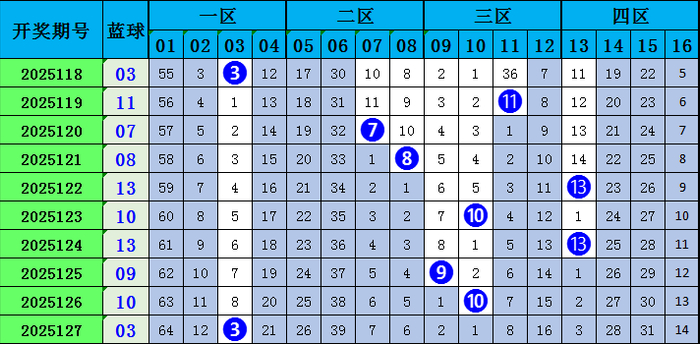 蓝球上期开出的是03,为小奇数号码。